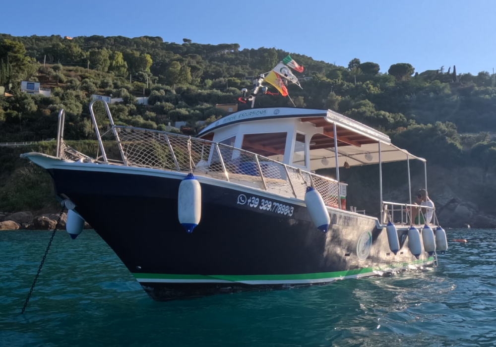Partenza dal porto di Presidiana, percorso lungo la costa tra fondali rocciosi e sabbiosi con tre soste di 30 minuti ciascuna.